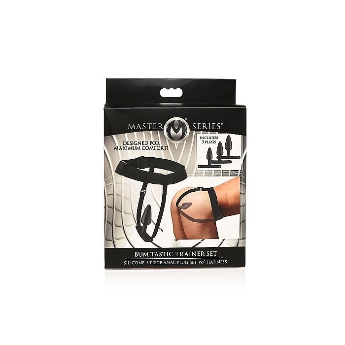Geniet van een zinderende anale stimulatie met deze heerlijke P-Spot Bum Tastic trainingsset van het merk Master Series. De set bevat drie buttplugs, van klein naar groot en is zeer geschikt voor beginners op het gebied van anale stimulatie. De plugs zijn gemaakt van zijdezacht en buigzaam siliconen. De set wordt compleet geleverd met een verstelbaar harnas waaraan je gemakkelijk één van de drie buttplugs bevestigen. Let op: gebruik uitsluitend een glijmiddel op waterbasis in combinatie met deze buttplugs van siliconen.