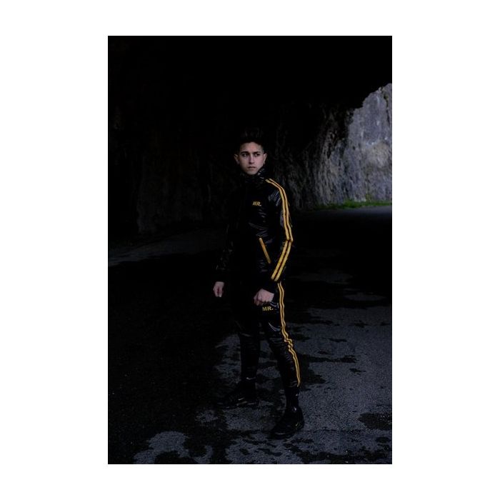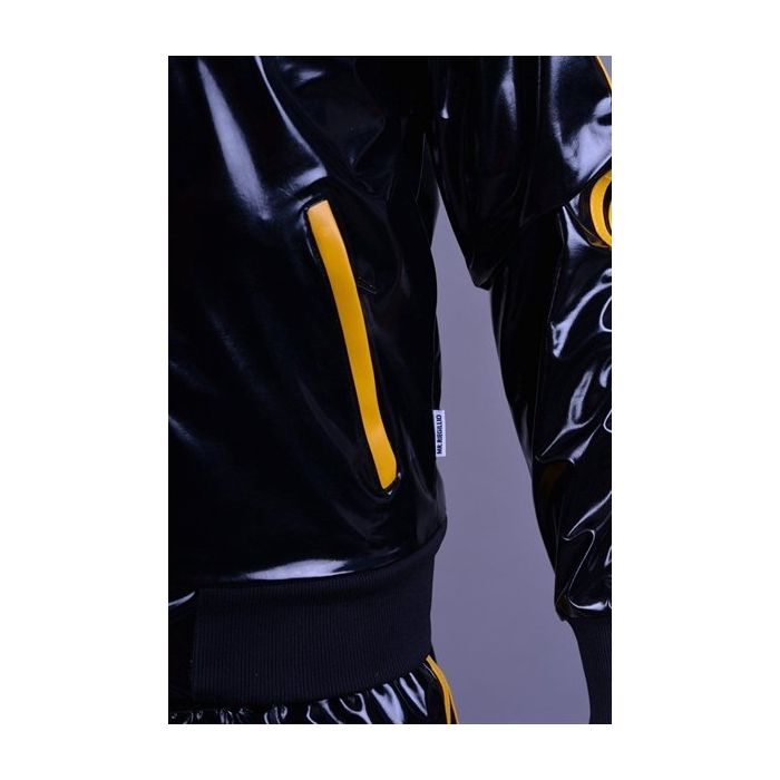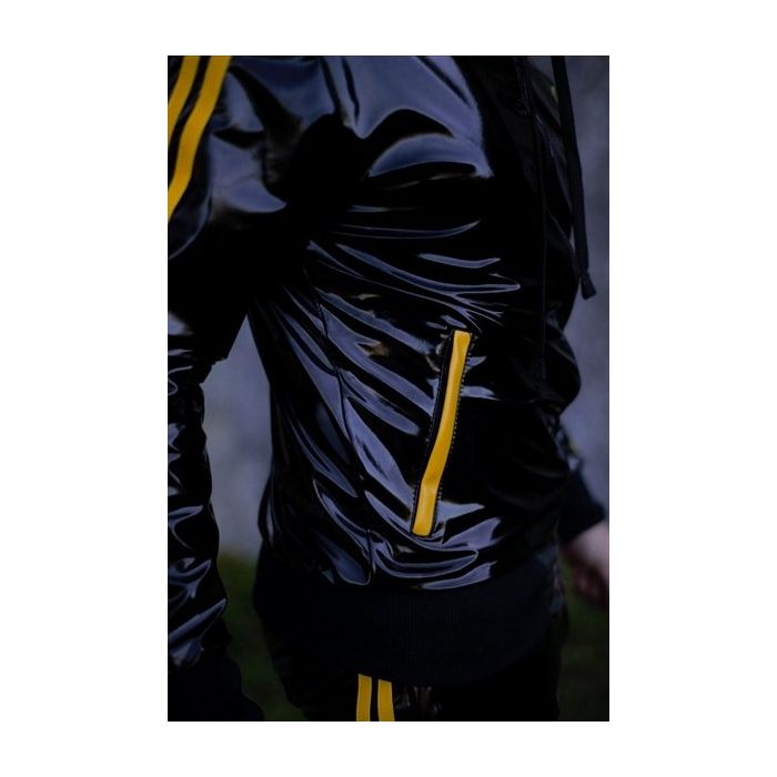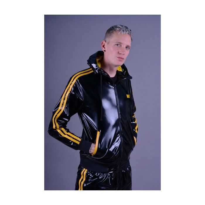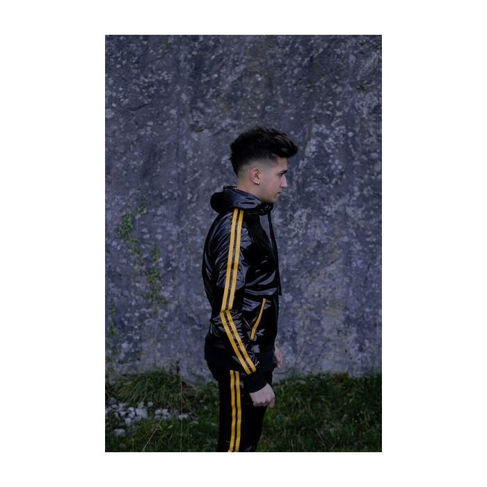 Deze stoere Trainingsjasje Mr Riegillio is gemaakt van pvc materiaal wat lekker aanvoelt. Het jasje is afgewerkt met mooie gele strepen, gele MR. logo op de borst en trekkoorden in de capuchon.