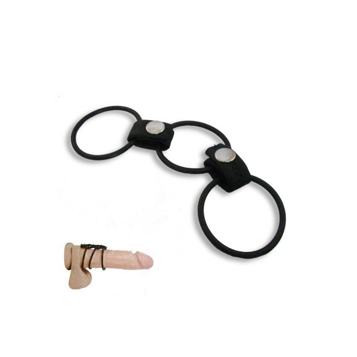 De set wordt stijlvol bij elkaar gehouden door twee lederen bandjes met drukknopen, die je gemakkelijk kunt loskoppelen. De rubberen ringen zijn ontworpen voor een stevige grip, wat niet alleen zorgt voor een betere controle, maar ook voor een verbeterde bloedcirculatie. Dit kan leiden tot intensere orgasmes en een langduriger genot.