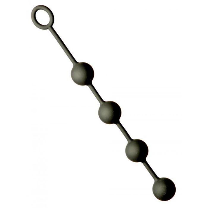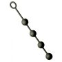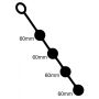 Vier extra grote zwarte anaal ballen, verbonden door middel van een flexibel koord, met een lus aan het eind van het koord om de ballen op een gemakkelijke manier terug te trekken. Deze anaal ballen zijn gemaakt van veilige siliconen en het geheel is gegoten uit één stuk zodat het een glad geheel is. Elke bol heeft een diameter van 60 mm en de totale lengte is 520 mm. Gebruik een glijmiddel op waterbasis. Deze extra grote anaalballen zijn ontworpen voor de meer ervaren anal player.